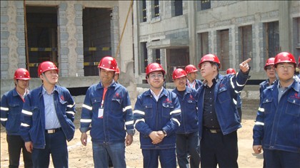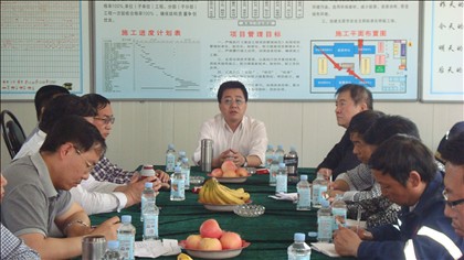 4月30日,集团公司高管层全体领导在董事长、总经理王贵聪率领下头戴安全帽,身着企业工装来到九分公司承建的汾东文体中心工地,对节日期间坚守岗位辛勤工作的全体作业人员、职工进行了看望和现场调研。进入现场后领导们直奔作业区,并步入正在施工的楼上对工程质量、安全防护措施、现场文明施工情况进行了细致检查,然后领导们又到生活区对作业人员的食宿情况进行了检查,王总经理与正在吃午饭的工人们进行了亲切交谈和情况调研。到办公区后,项目经理路立科和分公司经理张岐泰先后分别做了情况汇报,领导们听取汇报后,王总经理作了热情洋溢的重要讲话,首先,认为从施工现场建设到克服施工工艺的难度,体现了九分公司的实力和能力,并对九分公司的整体工作情况表示满意,同时提出了三点要求和希望:1、保持持续、健康、积极的发展态势,通过努力进一步增强实力,在经营的项目上要选择优良的、有形象代表性的项目,走自建项目发展的道路。2、抓住工程装修阶段的关键,一是施工标准不能降低,二是确保安全生产。3、坚持干、算结合,既要干好、也要算好。努力降低成本,提高效益,通过努力要干出九分公司的特色来。中午领导们与项目部管理人员、分公司领导及作业队负责人在项目部食堂共进午餐,对大家以示节日的祝贺和深切的慰问,极大的鼓舞了职工士气。