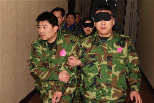 孤岛求生”这个项目是要求人只知道自己的任务而不知道其它岛上的任务,这个项目主要是考验一个团队在接到任务后高、中、基层员工的相互配合与沟通。盲人(是基层员工)、哑人(中层领导)、健全人(高级领导)、在训练的过程中,队员们都为团队完成训练科目各自发挥了重要作用,但是如果没有统一的指挥,团队就会出现混乱,训练科目也难以成功完成。