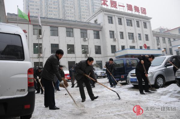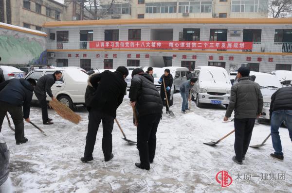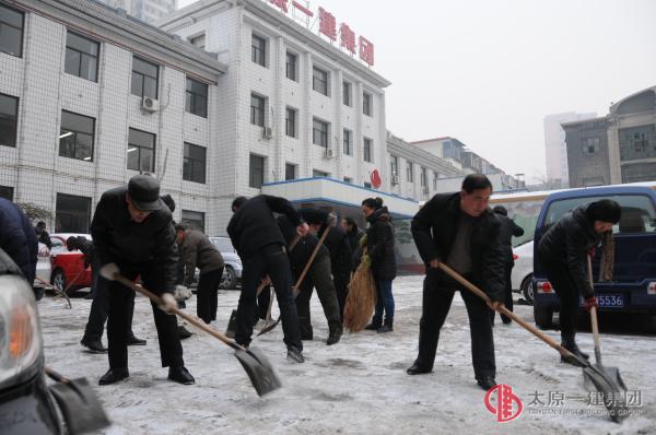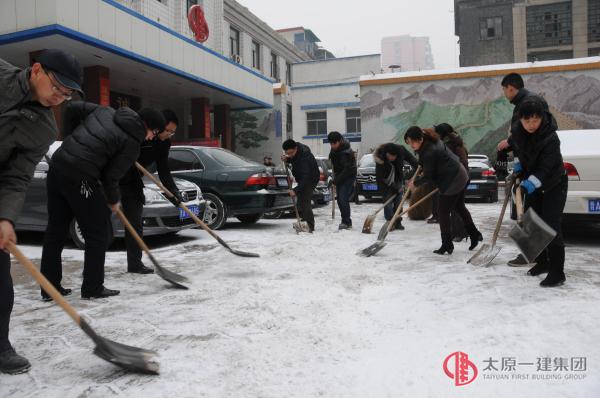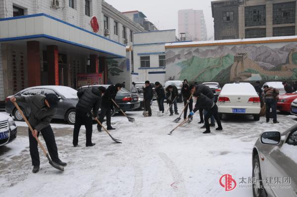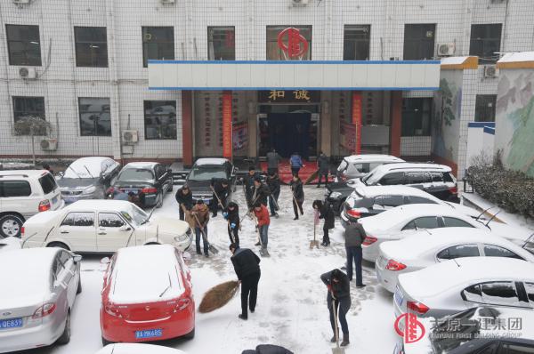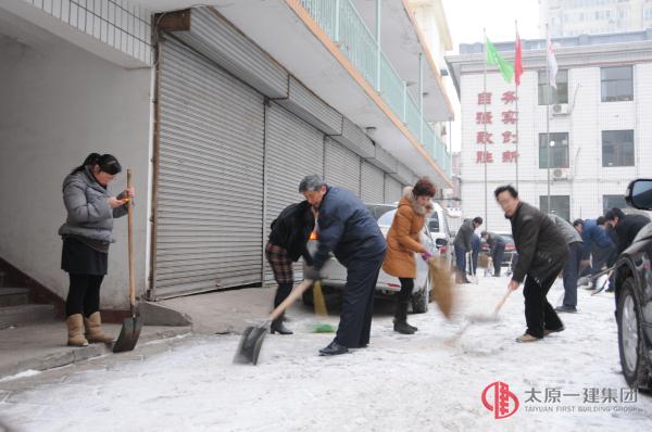 12月14日早晨,机关全体人员清扫机关大院及门前三包责任区内的积雪。