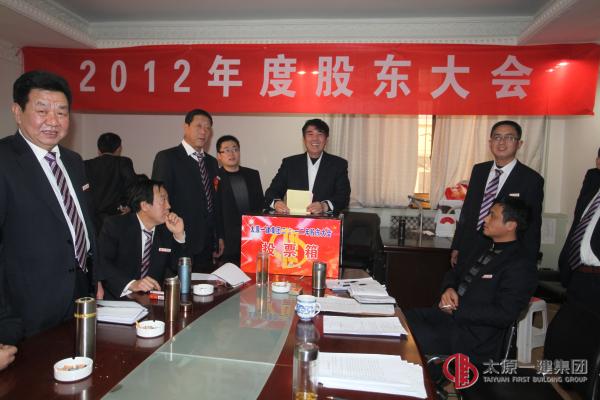 1月16日下午,项目工程管理处股东大会在项管处隆重召开。项目工程管理处全体股东参加了大会,会议应到36人,实到36人。会议由董事会授权委托人——项目工程管理处处长司中谦主持。大会首先进行了预备会议。由处长司中谦报告了到会股东人数、宣读了在1月12日集团公司2012年股东大会预备会上通过的《关于集团公司组织机构人员产生办法的决议》。正式会议上,由副处长李朝峰宣读了《集团公司第一届董事会暨2012年董事会工作报告》、《集团公司第一届监事会暨2012年监事会工作报告》,处长司中谦、总会计师孙天明、工会副主席李宝林、主任工程师刘泰宏分别对《2012年财务决算报告和2013年度财务预算方案(草案)报告》、《2012年度利润分配方案报告》、《第一个三年发展规划执行情况报告》、《第二个三年发展规划纲要》、《集团公司章程(修正案)报告》、《股权委托制度实施细则》等报告的(草案)和内容进行了报告,全体股东一致举手通过了以上八项报告及决议,接着开始选举董事会董事、监事会监事。通过监票人刘泰宏、计票人高荣珠、李迎东同志紧张有序的工作,会议在监票人当场宣布9名董事候选人3名监事候选人获得股东推荐金额的情况后结束。