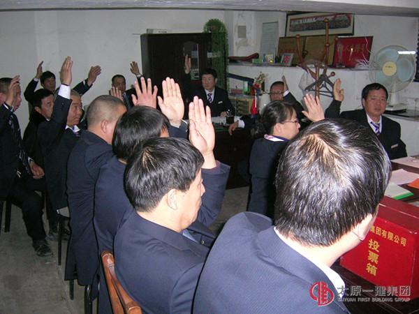 1月16日下午,钢结构分公司组织全体股东召开了股东大会。会上,经理刘宪玲传达了1月12日集团公司会议精神,并对有关的报告及草案、细则进行了宣讲,全体股东举手表决一致通过了各项报告决议的草案,并对董事会、监事会成员进行了选举投票,圆满完成了会议的各项工作。会议由经理刘宪玲主持。