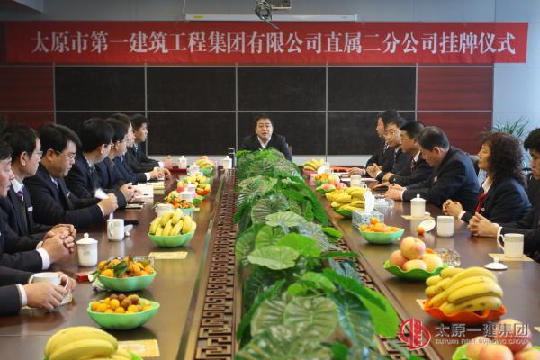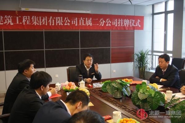 1月24日上午,太原一建集团直属二分公司举行揭牌仪式,出席揭牌仪式的集团公司领导有:王贵聪、宋双玉、张岐泰、王斌、路志旭、赵晨辉、王建萍、赵琦、李隆、范立强、李瑞琪及相关部门负责人,直属二分公司经理张晋、副经理武志军、工程部部长王尚卿、经营部部长郭向英、合同预算部部长梁永贵、物资材料部部长张四宝、安装部部长上官海波等,集团公司副总经理、市场开发部部长赵琦主持仪式。人力资源部长范立强宣读集团公司直属二分公司任命文件,集团公司董事长、总经理王贵聪与直属二分公司经理张晋在协议书上签字;王贵聪作重要讲话:首先,对博泰建设有限公司加入太原一建集团的团队并组建成立太原一建集团直属二分公司表示真诚的欢迎和热烈的祝贺!直属二分公司加入太原一建集团的行列,我们就是一家人,在今后的工作中要互相支持、共同进步、共同发展,一是要求集团公司全体领导和各部门负责人尽快对接、紧密联系,全力支持直属二分公司的工作;二是希望直属二分公司一定要守法经营,一切经营活动必须服从经营安全和生产安全这两条红线;一定要发挥好直属二分公司的优势,突出直属二分公司的特点,要有特色、有形象、有作为,在优势上创价值,在发展上作文章,努力成为集团公司直属分公司的排头兵;三是一定要健全制度、完善管理,与集团公司各项管理制度相衔接,不断创新各项管理,努力提高执行力,要加强人才培养,提高全员综合素质,尤其是在执业资格人员的培养教育取证方面要加快步伐,走在集团公司的前列;四是一定要珍惜当前良好的发展环境,直属二分公司基础较好,人员素质较好,办公环境很好,在集团公司的领导下,加快发展步伐,为实现双赢目标,让职工生活更加美好而努力奋斗。希望直属二分公司在占领市场上再上新台阶,在经营上再上新台阶,在企业积累上再上新台阶,在职工收入上再上新台阶!揭牌仪式结束全体合影留念。