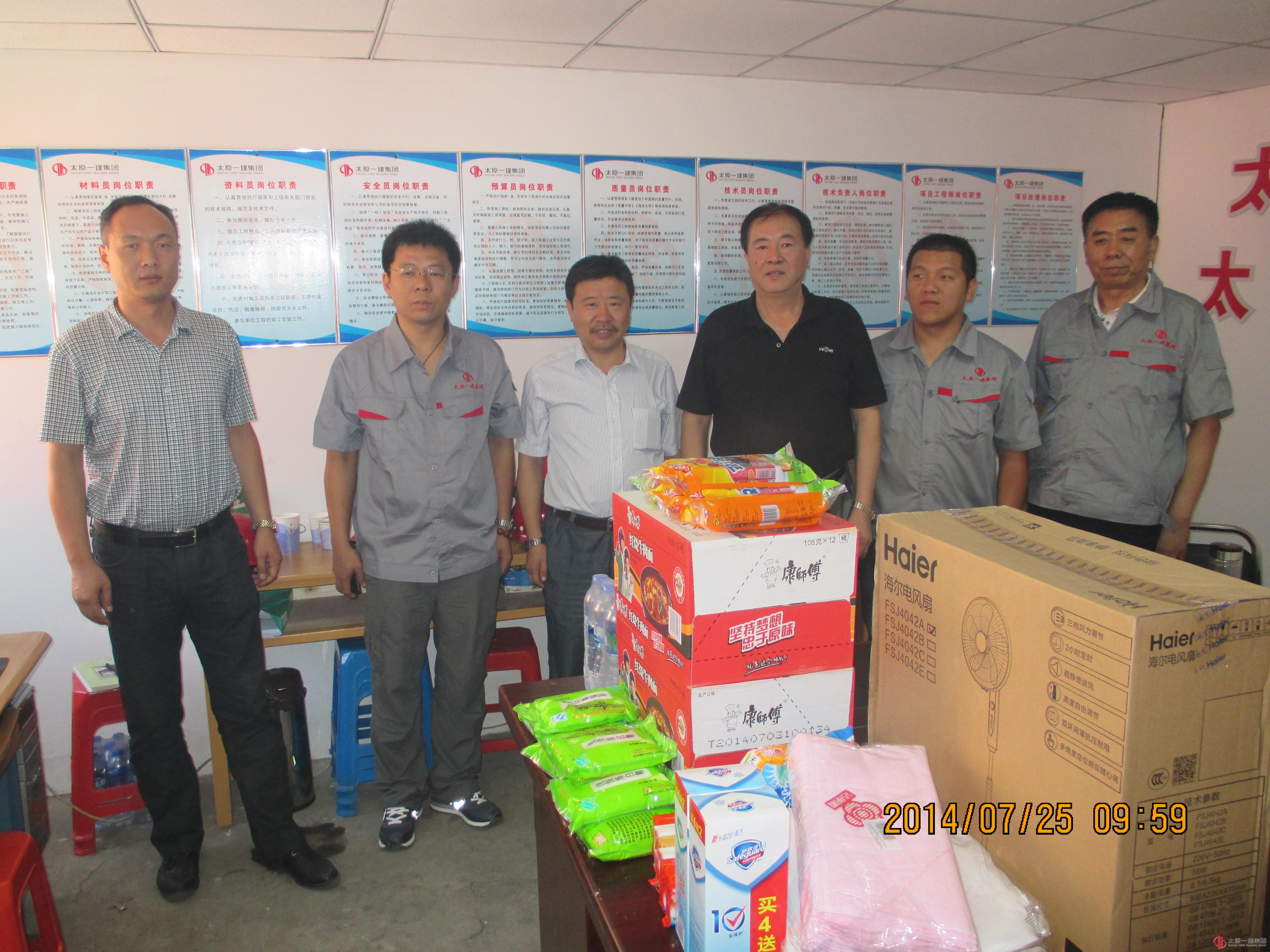 七月酷暑盛夏,正是施工生产的黄金季节。在这骄阳如火的日子里,集团公司非常关心牵挂施工一线正在挥汗大干的广大职工,召开了对施工一线夏送清凉专题会议,决定由集团公司总经理王贵聪亲自带队,兵分五路于7月24—25日对23个施工现场进行了“送清凉 鼓干劲 提信心 增斗志”慰问活动。