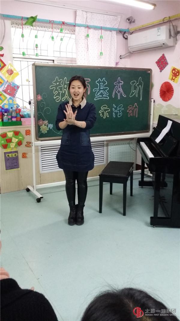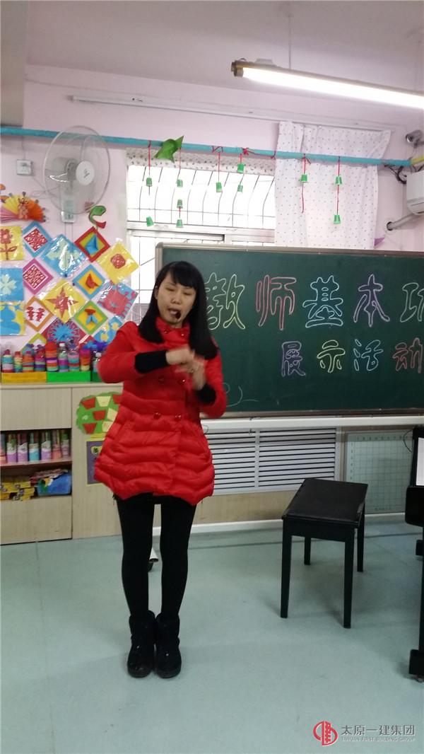 为加强我园师资队伍建设,提高教师专业素质,激励教师重视和坚持基本功训练,我园在2015年1月16日举行了全园教师基本功展示活动。本次活动通过对手指操、音乐律动、自弹自唱等平时教学活动中常用的一些基本技巧的展示,充分展现出作为一名幼儿园教师应有的风采。