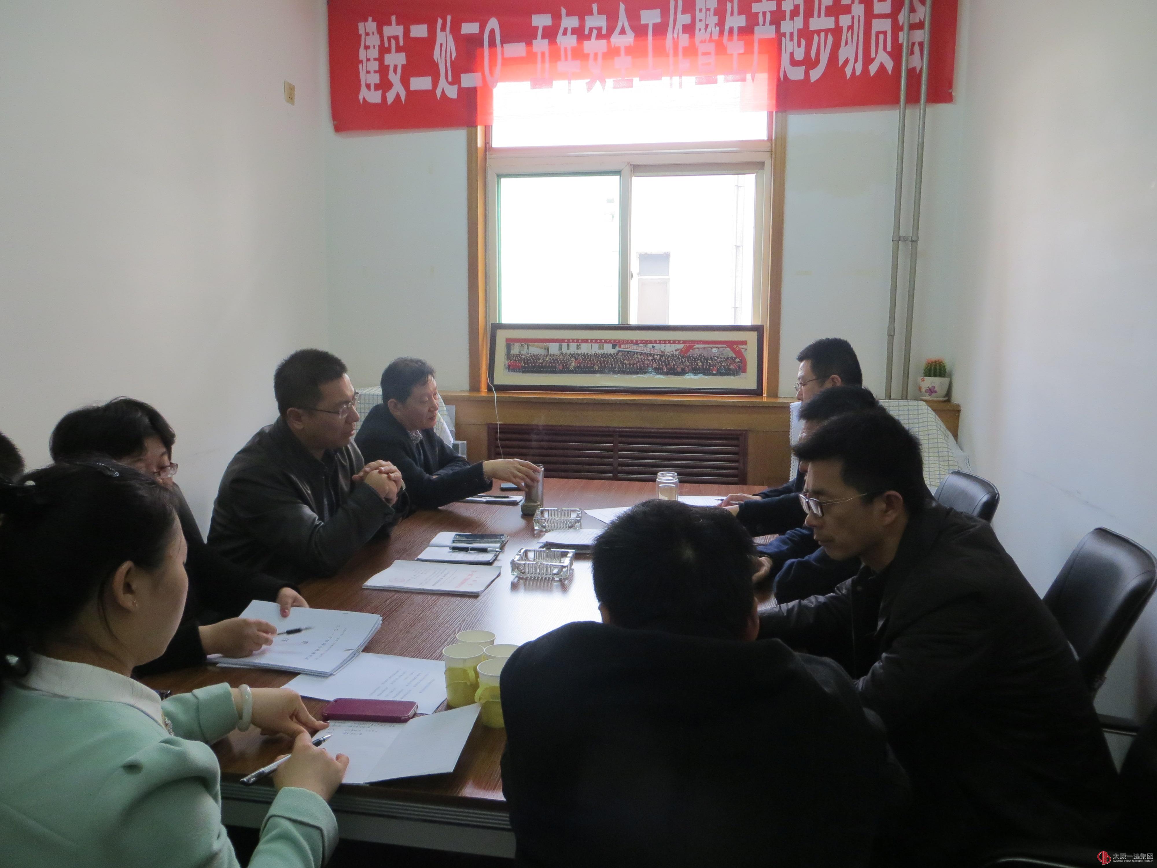 2015年3月17日上午,建安二处在会议室召开了二〇一五年安全工作暨生产起步动员会,全体管理人员参加了会议,会议由高龙副处长主持,集团公司监事会主席、人力资源部部长范立强应邀参加了会议。