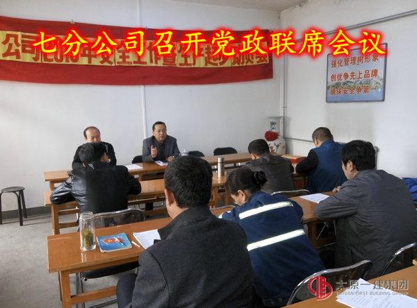 3月30日下午2:30,七分公司召开党政联席会议,会议由分公司经理郭建新主持,分公司副经理、项目经理、科长等12人参加。