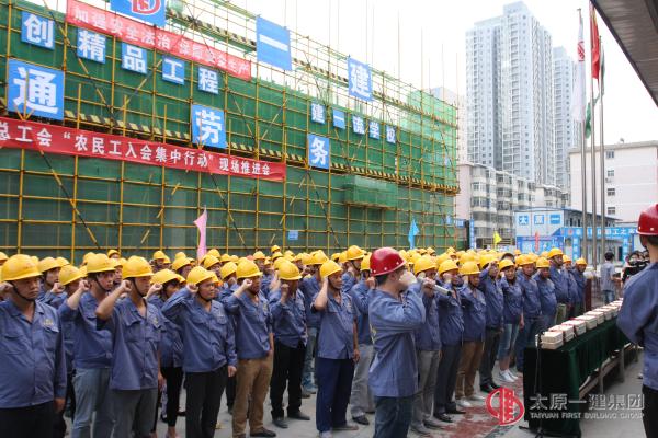 6月17日下午,太原市总工会“农民工入会集中行动” 暨夏季“送清凉”慰问活动在二十七中学校新建项目隆重举行。活动由太原市总工会副主席郎学军主持,参加活动的有市人大副主任、市总工会主席冯晋生、市住建委调研员强力军、集团公司董事长、总经理王贵聪等领导,易通劳务公司承办了本次活动。首先,太原市入并建筑企业工会联合会主席陈敏就“农民工入会”发表了讲话。二、易通劳务公司总经理李伟就农民工入会工作作了表态发言。三、易通劳务公司工会会员代表邓睿星带领农民工进行了入会宣誓。四、冯主席、王董事长等领导把会员证、西瓜、白糖、毛巾等慰问品亲手送到了农民工手中,对大家进行了慰问。领导们还兴致勃勃的参观了工人生活区,对现场管理给予了高度评价。270名农民工集中入会,“回到娘家”把入会的感动化作爱岗敬业,干好工作的行动。二十七中学校新建项目农民工集中入会、慰问活动是市总工会对企业劳务管理工作的认可,使农民工真切感受到“家”的关心关爱,激发了大家的荣誉意识、责任意识,调动了生产积极性,为集团公司的施工生产再立新功。