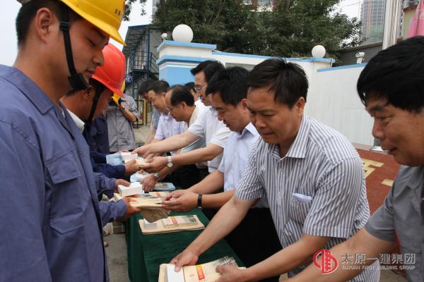 高温酷暑,烈日炎炎,7月10日上午太原市总工会慰问农民工活动在我分公司承建的田和食品集团制冷机房及预冷车间项目部举行,太原市总工会常务副主席范晓高、宣教部部长邹江等领导,带着水果、绿豆、矿泉水、毛巾、洗衣粉等慰问品来到施工现场亲切慰问了辛勤工作的广大农民工兄弟。活动第一项由田和项目部技术负责人朱蕊对工程情况进行简要的介绍。第二项由市总工会范主席为大家讲话,他强调大家一定要注意防暑,认真学习职工维权手册,并为大家送上问候和祝福。第三项由各位领导向大家发放慰问品。集团公司党委书记董事长总经理王贵聪、工会主席李瑞琪,建设单位田和食品集团公司书记王向兵、工会主席冯增喜、副总刘浩明,分公司领导班子全体成员及项目部全体员工参加了此次活动。活动由分公司工会主席高彩英主持。