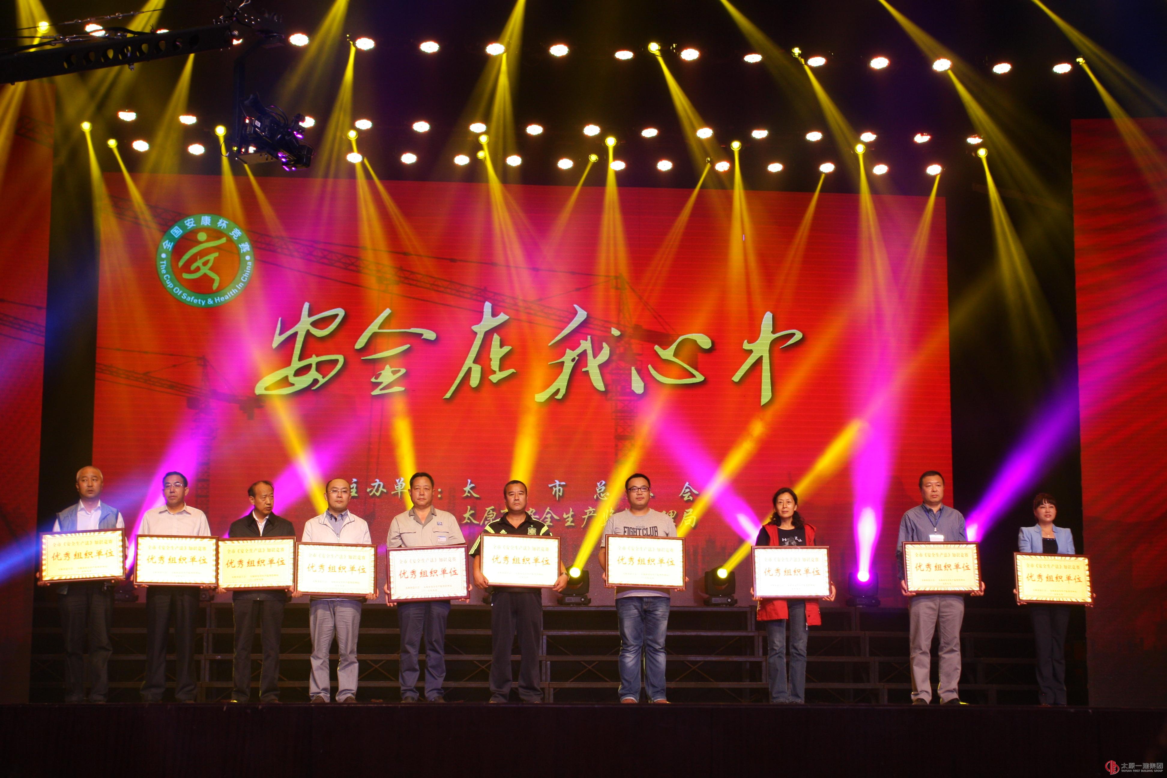 9月24下午,太原市总工会组织的“安全在我心中”主题文艺汇演在南宫举行。山西省总工会纪检组长李江龙、太原市人大副主任市总工会主席冯晋生等上级领导到会观摩,并为获奖单位颁奖。会上,集团公司被授予“太原市《安全生产法》知识竞赛”优秀组织单位称号;上级领导为我集团公司颁发了二○一四年度全国“安康杯”竞赛优胜单位的奖牌。这是公司近三年来连续获得全国安康杯竞赛优胜单位称号。与会领导和全体参会者共同观看了由山焦西山文工团、太钢文工团等带来的精彩文艺表演。公司工会主席李瑞琪率50名公司员工参加了大会。