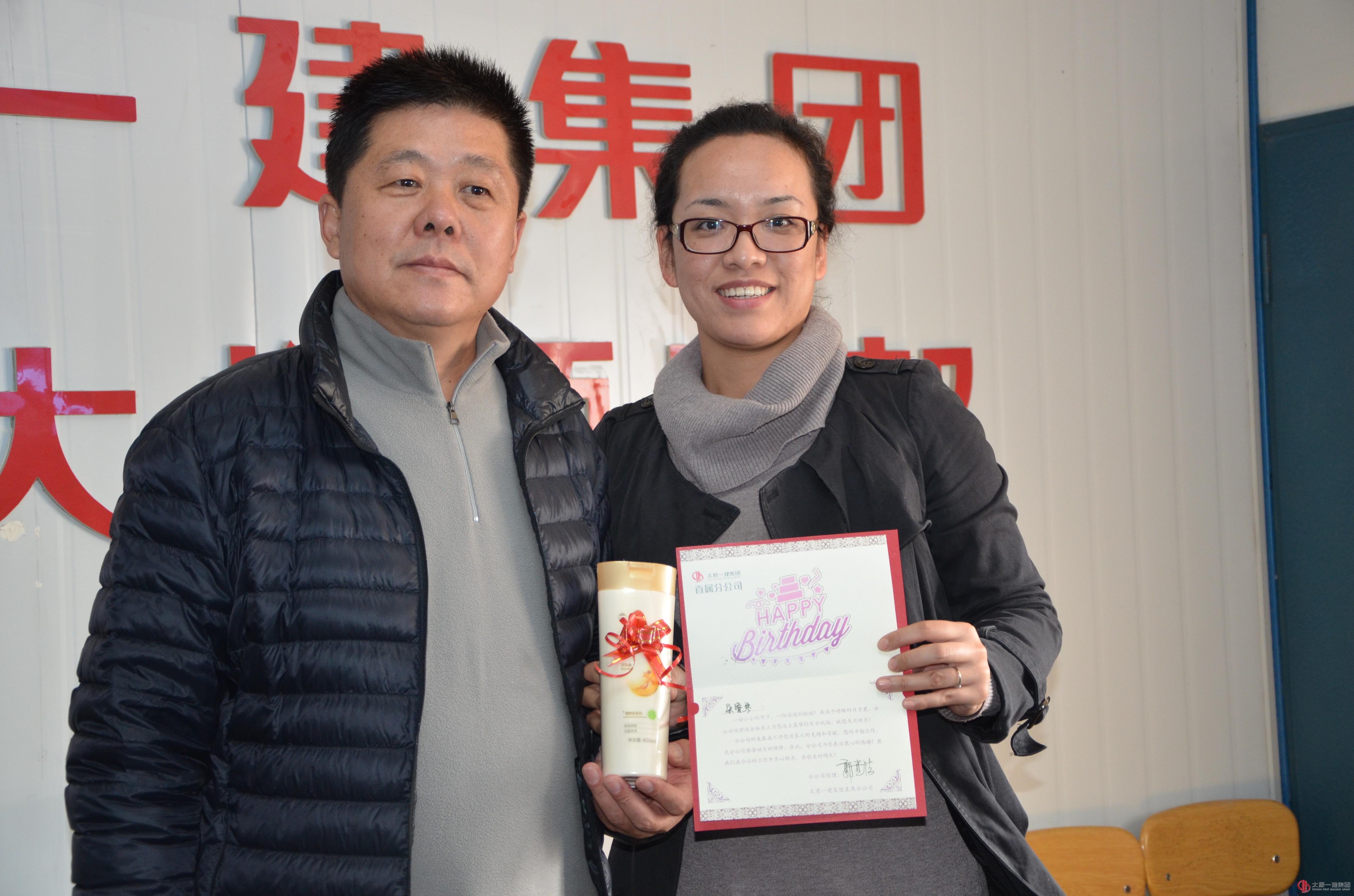 分公司的发展离不开每位员工的辛勤的努力与付出。为了营造温馨、和谐的工作环境和氛围,充分体现太原一建集团公司的“家”文化,让每位员工都能切实感受到大家庭的温暖,有“家”的感觉。11月14日在直属分公司会议室、唐久总部大楼项目部,分公司领导与11月份过生日的员工一起聚会,给“寿星们”送上生日礼物、生日蛋糕、生日贺卡。在分公司领导的人文关怀下,组织了寿星们参加此次生日聚会。生日聚会上,大家一起分享生日蛋糕,其乐融融。分公司经理郭贵法向职工送上浓浓的生日的祝福,对员工长期以来的辛勤工作给予了肯定和感谢,以实际行动传递好集团公司“家”文化的理念。
