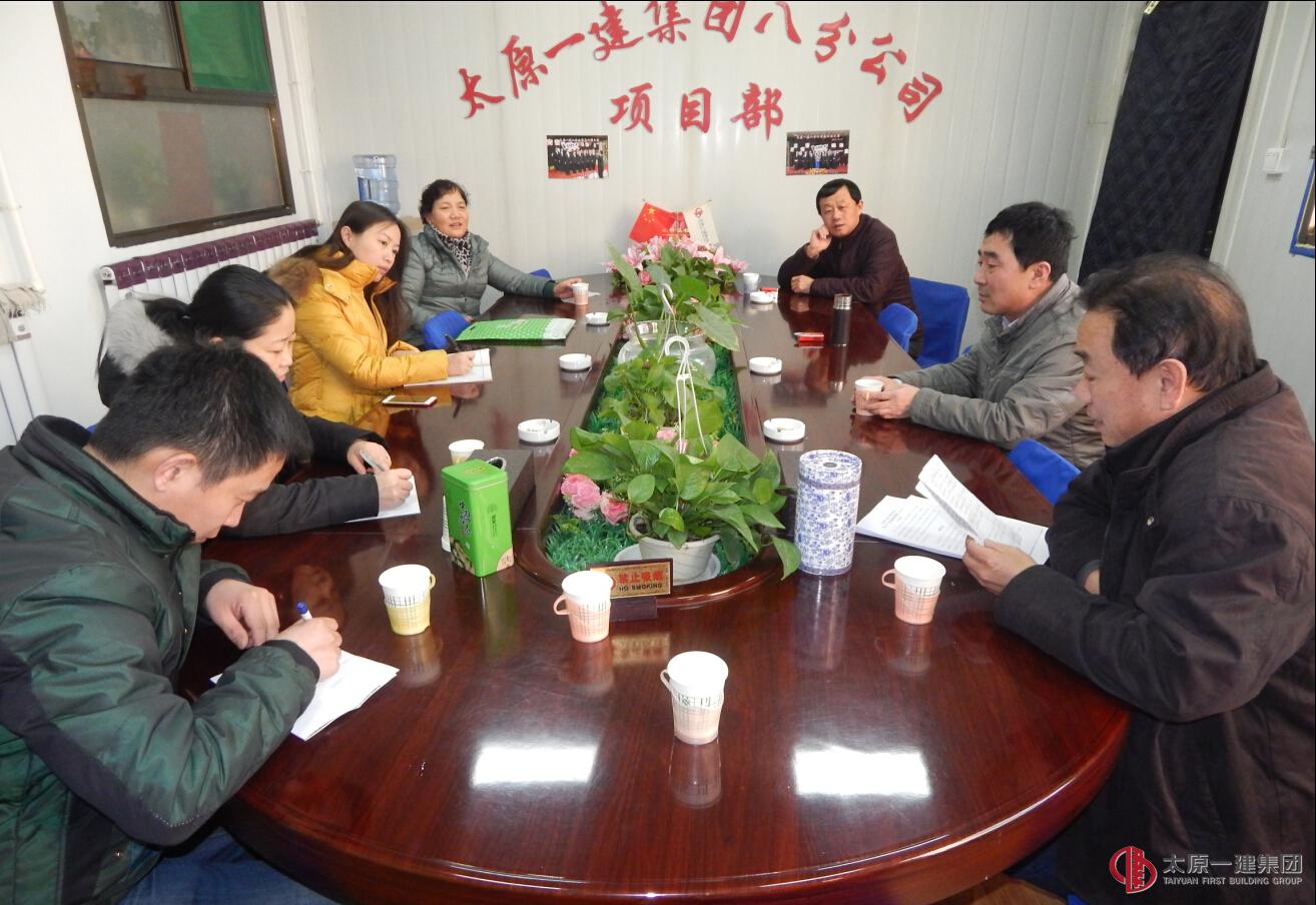 1月9日下午15时,八分公司项目班子成员、项目经理、职工代表在项目部会议室召开了“第三个三年发展规划纲要”讨论专题会议,会议由分公司经理赵晋生主持,会议首先传达了集团公司1月5号会议精神并宣读了“第三个三年发展规划纲要”讨论稿,会上大家积极讨论,各抒己见,针对企业现状提出了一些宝贵的建议及意见,对《关于清理整顿返聘外聘临聘人员及做好2016年定员定编定岗通知》的文件,赵经理要求按照文件精神做好具体工作安排。