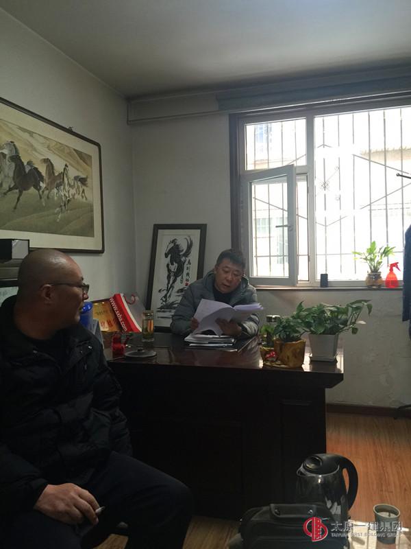 1月10日上午10点,十七分公司全体在册职工在办公室召开关于第三个三年发展规划纲要专题会议,会议由分公司经理曹阳主持。会议主要内容有:一、曹阳经理传达集团公司1月5日会议精神并宣读“关于清理整顿返聘外聘临聘人员及做好2016年定员定编定岗的通知”。二、曹经理宣读第三个三年发展规划纲要,并针对纲要进行讨论。大家各抒己见,纷纷发言。最后曹阳经理表示即使当前建筑行业形势严峻,但只要大家团结一心,没有克服不了的。