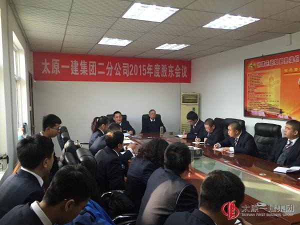 1月16日上午,二分公司在分公司会议室召开了2015年股东会议,会议应到股东16人,实到16人。会议由分公司经理刘海飞主持。会议的主要内容有: 1、分公司经理刘海飞传达了1月15日召开的股东预备会议精神;2、全体股东认真听取和审议了《2015年董事会工作报告》、《2015年监事会工作报告》、《2015年财务决算报告和2016年财务预算方案(草案)的报告》、《2015年度利润分配方案的报告》,审议了《第二个三年发展规划》执行情况的报告,听取制定《第三个三年发展规划纲要》的说明;3、与会人员相互探讨并对以上内容逐项表决,同时全票通过决议;4、股东选举第三届董事会董事、监事会(股东)监事。本次会议给予了每位股东充分的权利,促动每位股东切实履行好主人翁的职责,为集团公司第三个三年发展规划做出贡献!