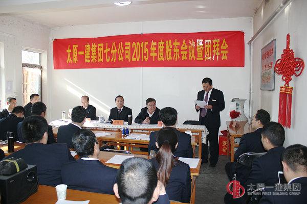根据集团公司指示,七分公司于2016年1月17日上午8:30分召开了《太原一建集团七分公司2015年度股东会议暨团拜会》,会议由七分公司经理郭建新主持,集团公司董事王斌参加,七分公司全体股东和管理人员共同参加会议。