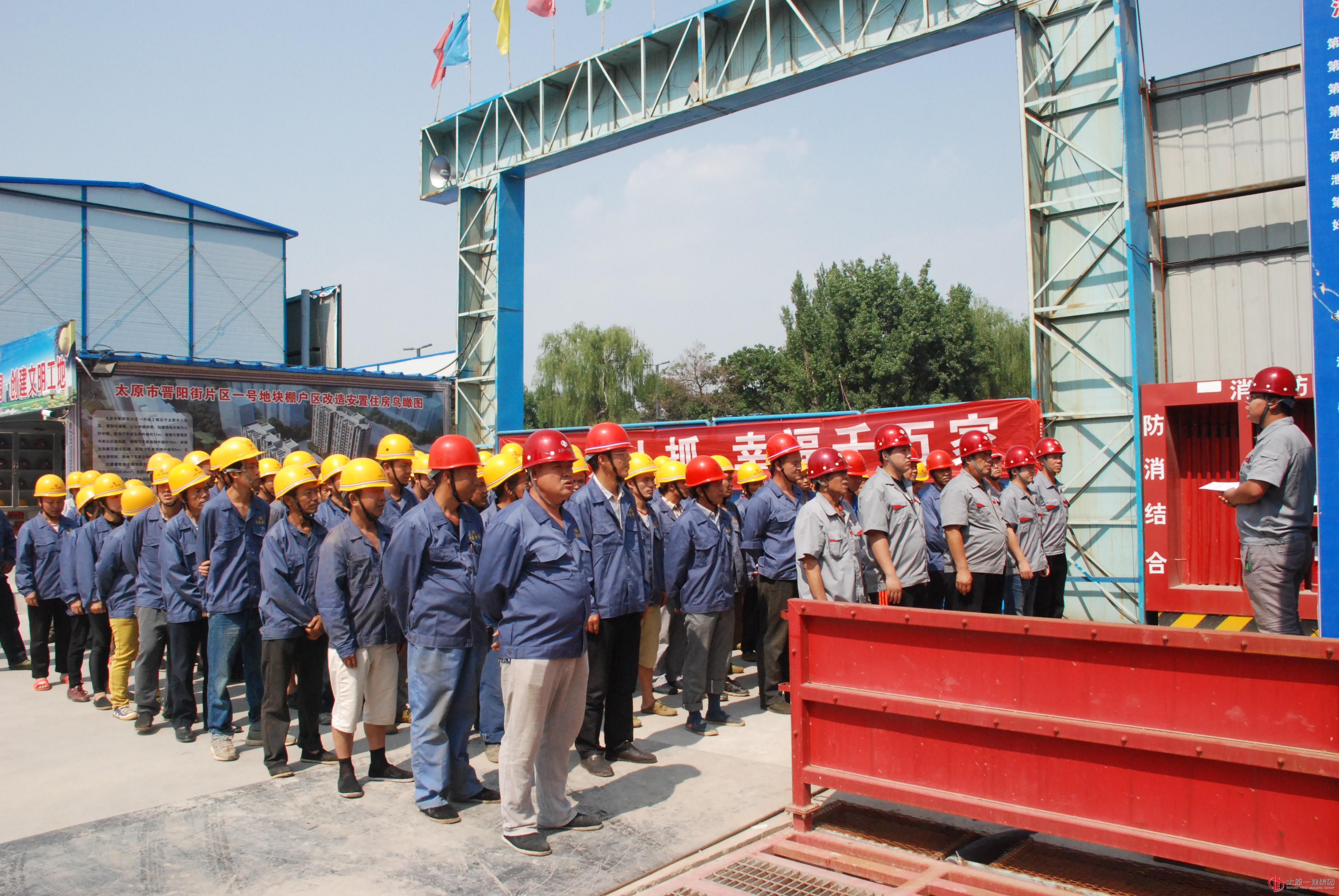 2016年6月8日,直属分公司承建的太原市晋阳街一号地块棚户区改造安置住房项目工地上,项目经理孟文彪组织项目部全体管理人员、易通劳务带班组长以及劳务人员开展“安全生产月”专题活动——三级安全教育、观看安全警示教育宣传片、宣传条幅签名活动。