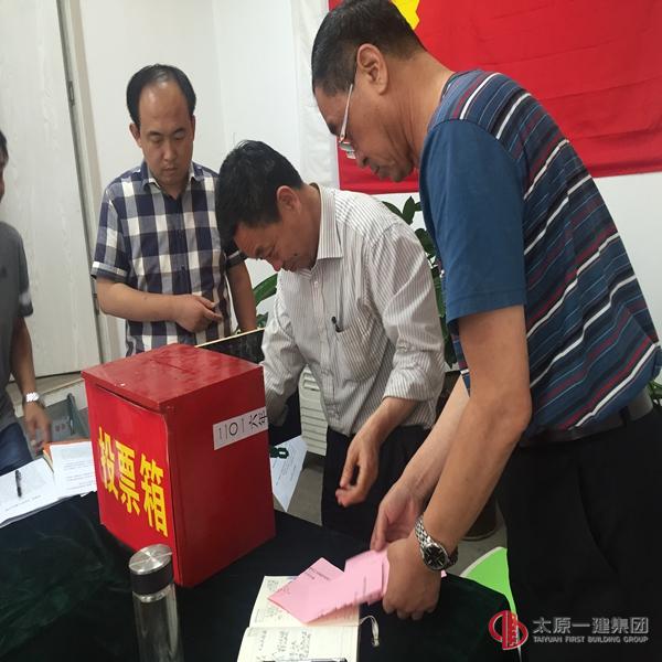 会上, 全体党员对中共太原一建集团第一次党代会代表进行了选举,大会现场悬挂会标和党旗,会场庄重。党支部书记李强主持会议,并严格按照会议程序进行。经过民主选举李强,王宏艳当选为代表,全体党员鼓掌祝贺,按规定进行公示后上报集团公司党群工作部。