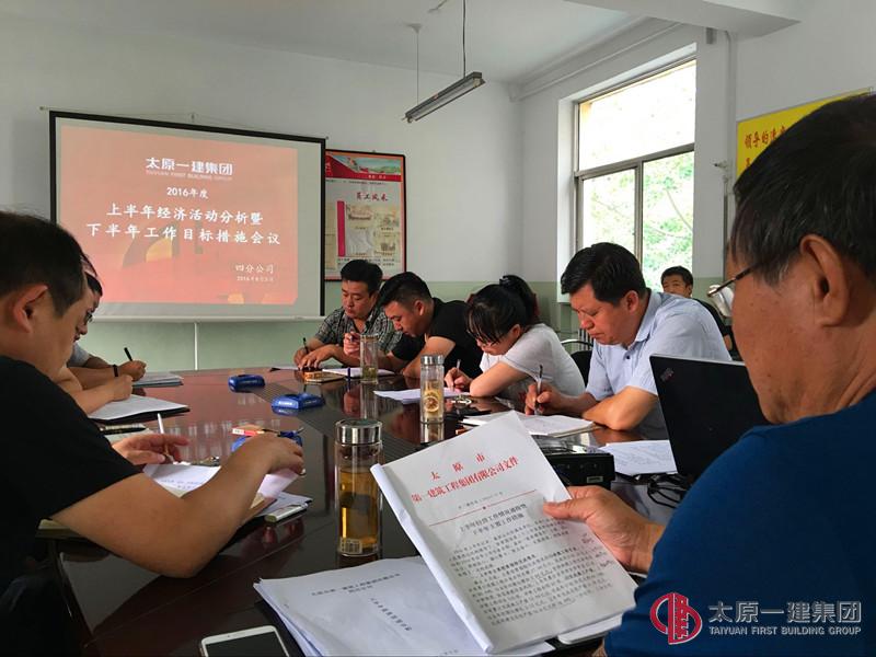 8月5日上午,四分公司召开2016年度上半年经济活动分析暨下半年工作目标措施会议,会议主要内容有:一、闫谦副经理通报集团公司上半年基层单位全面考核情况,传达集团公司8月份安全生产会主要内容,安排项目部相关工作。二、王东升经理传达集团公司7月23日会议精神,作分公司上半年经济活动分析,提出下半年工作重点和要求。强调和要求各在建项目工程在生产经营过程中,绝不能发生任何大小安全事故,要把安全生产管理工作做好做细。三、苗强副经理宣读《四分公司下半年工作目标措施》,强调下半年工作重点,做好四项建设及竣工资料、影像资料等工作。会议由苗强主持。