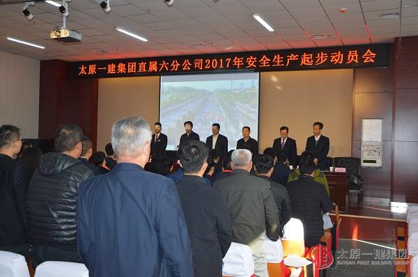 2017年3月12日上午9:00,在太原27中项目部会议室召开太原市第一建筑工程集团有限公司直属六分公司2017年安全生产起步动员大会。集团公司领导宋双玉、李世雄、赵琦、总经理办公室主任任秀山、副主任孔德伦和直属六分公司全体员工参加会议。分公司副经理李东明主持会议。