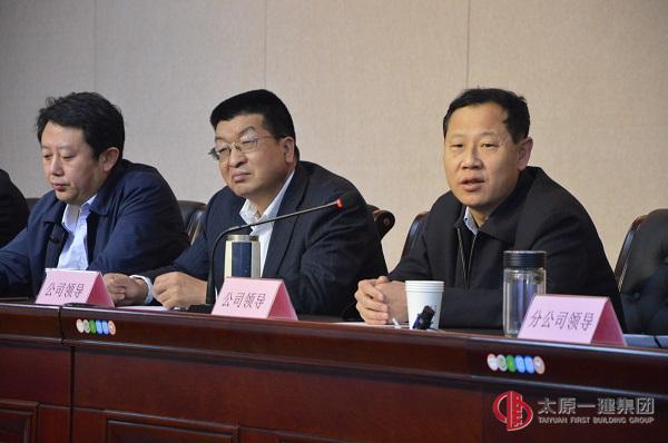 分公司副经理吴朝辉首先宣读党委书记、董事长王贵聪在企业工作生产起步动员大会上的讲话。分公司经理原扎根代表分公司领导班子作2017年全面工作安排,并结合实际传达解读了集团公司企业工作安排精神。分公司副经理霍立军做质量安全工作安排。项目经理杨发增、李永义、吴朝辉、霍立军、李睿分别对五个在建项目的生产情况做复工安排。集团公司副总经理赵琦在会上做了鼓励直属六分全体员工积极学习,努力考取行业所需证书,不断提高自身素质,强化专业技能的讲话。