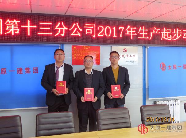 3月14日上午8:30,第十三分公司在所承建的山西省委党校项目部召开了分公司2017生产起步动员会暨工作安排会,集团公司分管领导赵峰、项目劳务负责人及分公司全体职工参加,会议由分公司经理孟计根主持。