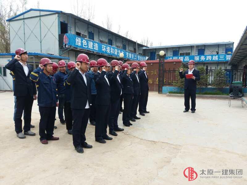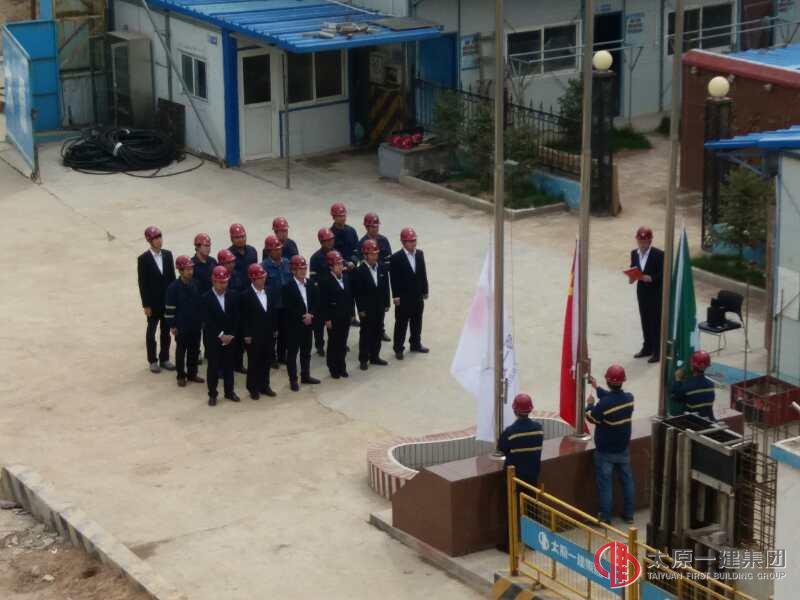 2017年4月17日上午08:00,五分公司在晋中市老年养护院项目部举行升旗仪式为企业七周年庆生。全体员工服装整洁、队列整齐,在分公司青年员工王伟的主持下,用铿锵有力的声音喊着口号、唱着国歌、司歌、庄重宣誓,呼唤起每位员工爱国爱企的热情,激发出员工的战斗力,为企业再创辉煌的决心!
