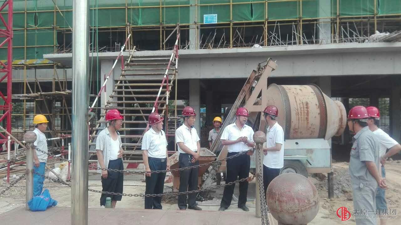 屯留县教育局领导在直属三分公司经理颉二鉷及项目领导班子成员的陪同下踏堪了施工作业现场,了解了项目工程进度部位和作业进展情况,对施工质量和施工进度给予了充分肯定,并提出了指导意见,要求项目部人员在工期紧张的情况下,抓好进度的落实,确保工程的按期完成,同时针对高温天气,要积极做好防暑降温工作。分公司经理颉二鉷强调指出,项目部一定要根据工程进度安排精心组织、精细施工,继续发扬太原一建并州铁军的精神,全力以赴、齐心协力,争取圆满完成施工任务,给屯留县人民打造一份优质工程!