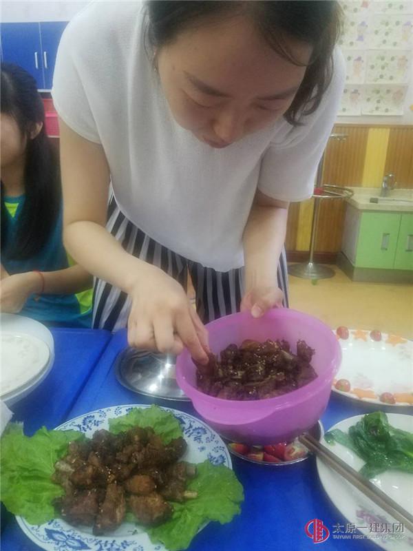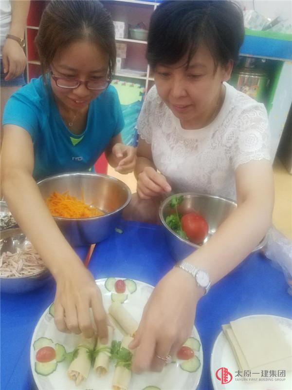 本次活动是为了让每天沉浸在琐碎的工作中的每一位教师放松心情,用自己的小创意、小制作点亮、丰富平时的业余生活,学会工作和生活融为一体。活动初期,教师们都在积极酝酿、准备着自己的拿手菜,私下里也互相讨论着、商量着,攒足了劲儿都想在美食比拼中精彩亮相。为了让教师们享受到共同制作、齐享美味的快乐,园里的后勤部也为本次活动投入了不同品种的蔬菜、瓜果、海鲜、面点、半成品,教师们从中选择自己需要的材料,在互帮互助中完成了一道道精致的美味佳肴。