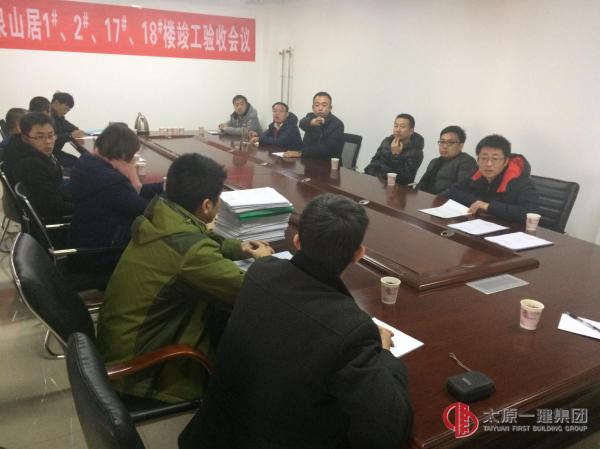 2017年12月11日由直属四分公司承建的玉泉山居项目1-1#楼、1-2#楼、1-17#楼、1-18#楼顺利通过竣工验收。参加验收的单位有太原市质量监督检查站、太原远古玉泉置业有限公司、山西晋投建设监理有限公司、山西信至成工程勘察咨询有限公司、太原王孝雄建筑设计院、太原市第一建筑工程集团有限公司直属四分公司、山西中鼎建筑工程质量检测有限公司、太原市城市建设工程检测有限公司。受建设单位委托,山西晋投建设监理有限公司主持了验收会议,并由太原市质量监督检查站对验收过程进行了全程监督。