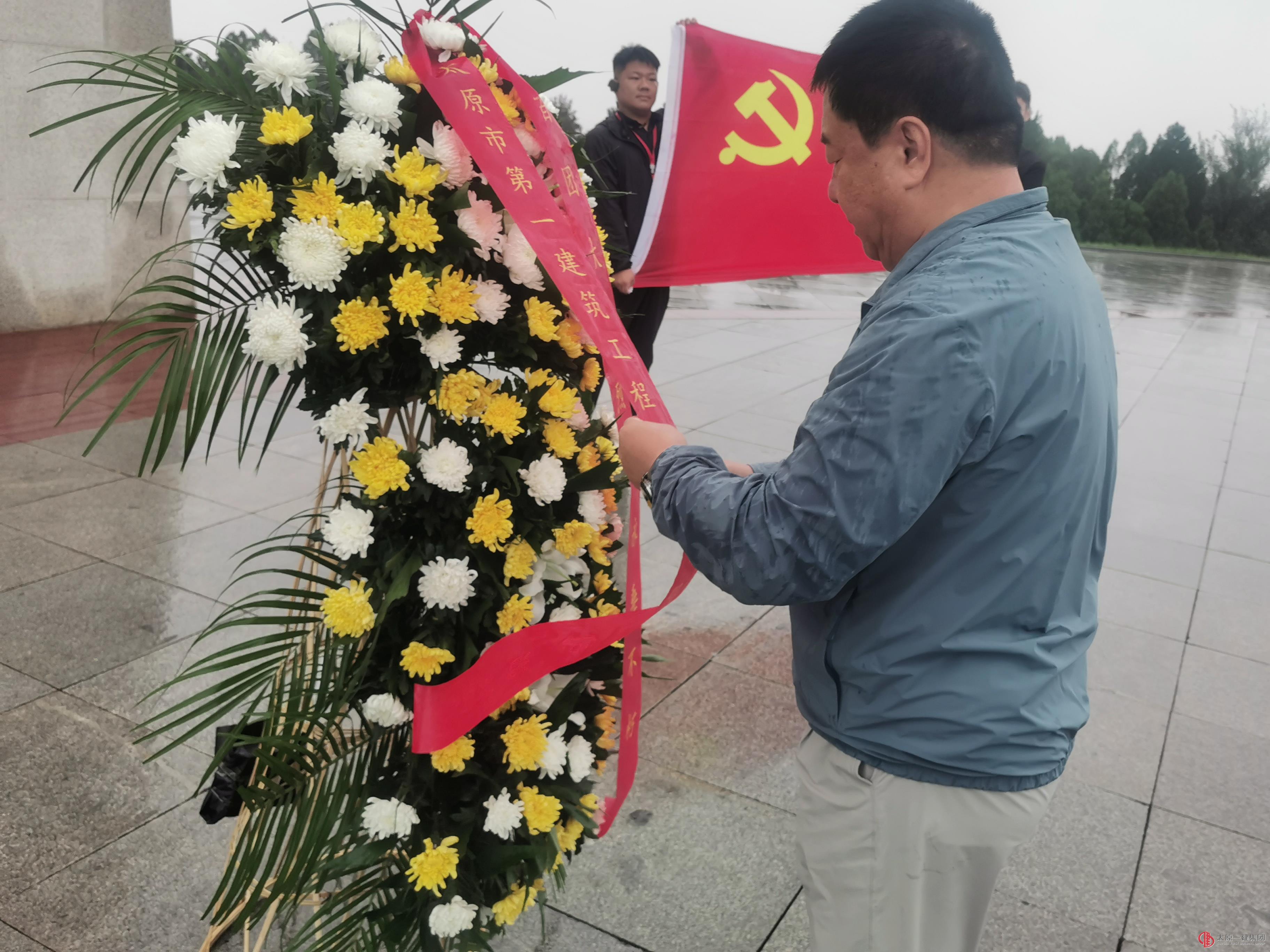 经过一路上的预热活动,大家怀着崇敬之心来到狮脑山百团大战纪念碑广场,向百团大战烈士敬献花篮。细雨中,太原一建集团党委书记王贵聪走向前整理花篮飘带,全体人员整齐列队,向在百团大战中英勇牺牲的烈士们三鞠躬并瞻仰丰碑,敬献鲜花,深切缅怀他们的丰功伟绩,表达对先烈们的无尽追思与崇高敬意。