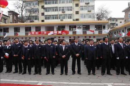 4月10上午,太原市第一建筑工程集团有限公司总部-----精营东边街39号大院张灯结彩,锣鼓喧天,办公楼楼顶“太原一建集团”六个红色大字透出集团公司新的生机,内方外圆的企业徽矗立在办公楼门厅上方,“做强主业,多元经营,跨越发展,同心协力,再续辉煌”的大幅标语悬挂在西楼南楼格外醒目,喜庆的拱门中央和门厅上方“热烈庆祝太原市第一建筑工程集团有限公司成立一周年”的大型横幅非常夺目,“善建者诚,思远者和”的企业核心价值观理念书写在拱门两侧的华表式柱子上给人以无限的思索,办公楼正面西侧“务实创新,自强致胜”的企业精神显得非常耀眼。七时三十分,整个总部大院顿时沸腾起来,600余名员工,春风扑面,精神抖擞,着装统一,神采奕奕步入会场,70余名公司历届老领导、老干部、老劳模、老党员、老同志,满面笑容,健步进入会场,40余名劳务合作单位负责人向自己过节一样兴高采烈的进入会场,太原日报、太原电视台、山西工人报、黄河新闻网等各大媒体的记者带着长枪短炮早以做好了采访报导的准备。八时整,全体员工列队完毕后,随着庆祝活动副总指挥、集团公司副董事长、副总经理宋双玉宣布庆祝活动开始后,国旗护卫队正步步入旗占前,五星红旗在嘹亮的国歌声中徐徐升起;八名集团公司司旗、安全旗护旗手健步走向旗台,全体员工面对司旗,举起拳头,举行了庄严的宣誓仪式,伴随着集团公司司歌进行曲集团公司司旗和集团公司安全旗升起;集团公司董事长党委书记总经理王贵聪及集团公司全体领导共同为企业精神揭幕,全体员工共同高诵“务实创新,自强致胜”的企业精神;王贵聪分别为集团公司各子公司,各基层单位授活动用旗;企业文化建设编委会李隆作集团公司司旗、司歌、司徽、画册形成的报告;王贵聪分别为各子公司、各基层单位颁发集团公司画册和司歌光碟;集团公司董事长党委书记总经理王贵聪作集团公司成立一周年主旨讲话(全文另发);全体员工在誓词牌上签名后按单位序列分别与集团公司全体领导合影留念。主场活动结束后,分别召开公司历届老领导、老干部、老劳模、老党员、老同志和劳务分包合作单位负责人两个座谈会,集团公司领导王贵聪、宋双玉。张岐泰、司中谦、王斌、路志旭、赵晨辉、王建萍、刘洁、赵琦分别与公司历届老领导、老干部、老劳模、老党员、老同志和劳务合作单位负责人见面并分别参加了座谈会。在老同志座谈会上,王贵聪代表集团公司向前辈们介绍了集团公司的有关情况,原总公司党委书记、公司党委书记康学为,原公司党委书记黄源、原党委副书记徐承理、原公司经理助理付连喜、原公司人事处副处长、党办副主任赵力萍,退休老同志王世伟,原基层行政负责人杨步明,家属代表郝雨明等相继在座谈中发言,共同表达了“高兴、祝愿”的心声,非常高兴集团公司请我们回来,非常高兴参加座谈会,看到集团公司的变化非常高兴,听到集团公司的发展所取得的成绩非常高兴,听了集团公司“313”九年发展规划非常振奋,与会老领导、老干部、老党员、老劳模、老同志及家属代表共同祝愿集团公司的发展越来越好并取得更加辉煌的成绩。