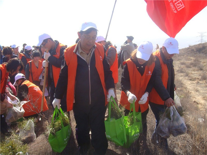 为迎接集团公司挂牌成立一周年,积极响应3.12植树节活动,3月27日,集团公司党委办、团委根据党委的部署,组织新党员、入党积极分子、团员青年46人参加了太原市环保志愿者协会组织的赴阳曲县韩寨村棋子山退耕还林基地义务植树活动。大家驱车来到韩寨村首先领取了介绍韩雪琴义务植树《我为母亲披绿装》的先进事迹材料和《自制环保酵素关爱地球母亲》宣传材料,然后携带工具沿着崎岖的山路步行15公里到达棋子山顶,听取了志愿者对植树要领的讲解,在走进大山、亲近自然、绿化祖国、爱我中华的号子声中,开始了紧张而有序的劳动,在劳动中,山西科教频道、山西晚报、太原晚报义工论坛分别采访了集团公司党委副书记宋双玉、党办主任范立强,对本次活动给予了报道,大家在短短的三个小时内会同其他志愿者300余人共植树5200余株,本次公益自愿活动的参与者举着太原一建集团的司旗、身着统一的工装不仅圆满了预定的植树任务,而且把剩余的废弃物收拾归笼,带入指定地点,沿途行进整齐有序,劳动中互助协作,给当地村委村民、环保志愿者协会留下美好的形象,同时也使参与者受到保护环境、爱护家园的教育,在参与社会公益活动,履行社会责任上树立了太原一建集团企业的新形象。(更多照片请登录企业文化)