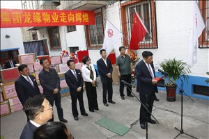 4月28日上午,精营东边街24号大院,彩旗飘扬,锣鼓喧天,庆祝太原龙缘物业管理有限公司揭牌成立。上午10时, 集团公司领导董事长总经理王贵聪、副董事长副总经理宋双玉、副总经理司中谦、副总经理王斌、总会计师赵晨辉、总经济师王建萍、总经理助理刘洁,各基层单位行政负责人,机关部室有关负责人,太原市城市建设国有资产经营公司董事长陈庆芳、副总经理李宏、总工师韩柏、纳海永基房地产开发有限公司董事长张博武及龙缘物业管理有限公司全体员工参加了揭牌仪式。集团公司人力资源部部长范立强宣读了集团公司对龙缘物业公司的任命;龙缘物业公司经理李文山致辞并介绍了太原龙缘物业管理有限公司概况和发展方向;集团公司董事长党委书记总经理王贵聪作了重要讲话:①转变观念、努力学习、提高素质,适应新的市场形势,必须尽快由服务型转变为经营型企业。②从零开始,抓管理上档次,拓宽思路,除抓好本单位的物业管理工作外,要面向社会,拓宽物业管理经营思路。③坚持党和政府的领导,坚持遵纪守法合法经营,关爱员工。加大职工老旧住宅改造力度,改善职工的居住环境,强化物业管理的硬件设施;太原城市建设国有资产经营公司副经理李宏和纳海永基房地产开发有限公司公司董事长张博武分别作了热情洋溢的讲话;二分公司经理孙庆福、十一处处长牛广春分别代表各基层单位致辞祝贺,祝愿太原龙缘物业管理有限公司前程广阔,祝愿太原龙缘物业管理有限公司明天更美好。11时38分集团公司董事长、党委书记、总经理王贵聪、城市建设国有资产经营公司董事长陈庆芳、纳海永基房地产开发有限公司董事长张博武、太原龙缘物业管理有限公司经理李文山共同为太原龙缘物业管理有限公司揭牌并合影留念。集团公司总经理助理刘洁主持了揭牌仪式。