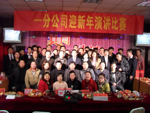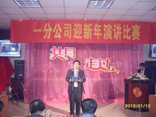 元月13日下午,一分公司举行了新领导班子上任10年发展回顾暨迎新春“共同走过”主题演讲比赛活动。党支部书记经理张玉喜代表领导班子向集团公司领导、向合作队伍、向为企业发展辛勤耕耘的全体员工致以诚挚的谢意和新春的祝愿,对新班子上任共同走过难忘的10年做了简要的发展回顾总结及2012年的工作畅想,集团公司董事长总经理王贵聪、副总王斌、张岐泰、路志旭、工程部部长李隆应邀参加活动,分公司全体员工及部分合作队伍约70余人参加了活动。
