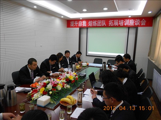 4月7日、8日一分公司利用休息时间组织56名员工进行了“提升自我 熔炼团队”拓展培训。13日下午,召开了部分参训人员座谈会,会上,共同观看了拓展培训专题片,重温了两天来培训感人的一幕幕,与会人员畅所欲言谈感受、谈体会、谈工作、谈这次拓展培训带来的收获与震撼,大家又一次接受了心灵的洗礼。集团公司副总宋双玉到会,提出了四点要求与希望:一是深化培训成果,把培训成果应运到具体工作中;二是联系实际主动承担起灌输思想、贯彻行为的责任;三是如何把拓展培训中挖掘的感受,变为发展的成果,目的不在于知,而在于行;四是怎样打造优秀团队,工作上有个质的变化,迎接未来的挑战。经理张玉喜主持会议。