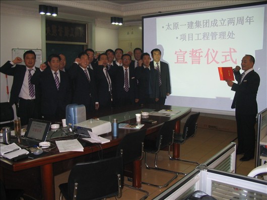 会前在支部副书记李宝林的领誓下全体重温员工誓词和安全誓词。并共同学习王总经理在庆祝集团公司成立二周年活动主旨讲话精神。