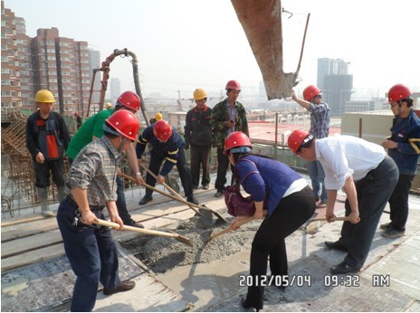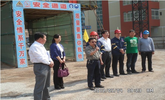 5月4日上午,由太原一建集团直属分公司承建的万柏林区青少年学生活动中心工程举行了主体结构封顶仪式。该仪式由万柏林区教育局副局长李玉成、万柏林区教育局机械科科长高亮、青少年活动中心主任苗志荣、万柏林区妇联主席康卫青等领导莅临参加。万柏林区青少年活动中心工程作为2012年万柏林区规划建设的61项工程项目中的一号重点项目,得到了区教育局的大力支持。该工程自2011年10月1日开工至今天历时123天。万柏林区教育局副局长李玉成、活动中心主任苗志荣对施工单位能够在场地狭小、工期紧迫、资金短缺等重重困难下提前高质量地完成主体封顶表示了肯定和赞扬,并希望分公司在今后的工作中继续保持主体工程建设的激情,把主体结构封顶当做新的起点,坚持发扬团结合作、锐意进取的精神,精益求精、创造精品工程,确保该工程优质高效如期完成,向下半年“中国共产党第十八届代表大会”的召开献礼。