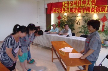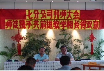 5月25日下午,七分公司召开“名师带高徒”主题活动会议,王斌副总经理及七分公司全体人员参与了这次会议,分公司副经理弓马威主持会议。本次活动会议通过拜师仪式、签订承诺书共成立了七对师徒,所有师、徒都对今后的工作作出了承诺,确定了努力发展的方向,为集团公司百年发展计划贡献自己的力量。集团公司副总经理王斌发表讲话,要求徒弟继承和发扬师傅的优良品质,提高个人素质。号召师傅成为名师,徒弟成为名徒。