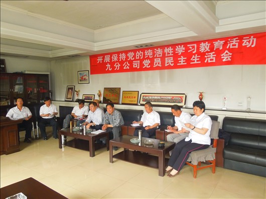 5月3日下午,九分公司党支部召开“开展保持党的纯洁性学习教育活动”党员民主生活会。支部现有在岗党员9名全部参加,这次党员民主生活会的召开是支部根据集团公司党委“关于开展保持党的纯洁性学习教育活动的安排”,认真按照活动步骤经过召开党员大会部署动员、集中学习,集中查摆,开展谈心等活动基础上进行的,为保证会议质量和效果,每位党员都提前以书面形式做了认真准备,在民主生活会上党员们紧紧围绕“入党为什么,在党干什么”主题认真对照“六查六看”,突出寻找自身存在差距,突出开展自我批评,突出对今后努力方向表态人人进行了发言,特别是集团公司党委委员、常务副总经理、九分公司经理张岐泰以支部普通党员的身份围绕党员的信念、立场、本色、作风、廉洁、工作六个方面作了诚恳的对照检查并就贯彻落实集团公司确定的“加快发展、重塑形象、增强实力、增加积累,造福员工,汇报社会”阐述了想法和措施。会上,支部书记李荣安代表党支部提出五点要求:1、履行党员“一句话”承诺,2、践行两个核心价值观(①太原市核心价值观,②太原一建集团核心价值观。)3、牢记党的“三个代表”,4、坚持“四项基本原则”,5、争当“五带头”党员。集团公司党委委员、总会计师赵晨辉代表党委到会并讲话,对分公司党政工作给予了充分的肯定,同时就加强支部建设,凝聚团队力量,推进单位进中求稳、做强做大充分发挥党支部的战斗堡垒作用作了重要指导。座谈会由李荣安主持。