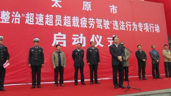 为有效预防和减少道路交通事故,公安部决定自2011年11月1日至2012年3月31日,在全国范围内组织开展为期五个月的集中整治三超一疲劳即:超速、超员、超载、疲劳驾驶违法行为专项整治行动。太原市公安局交警支队在西客站召开了专项整治启动仪式大会。
