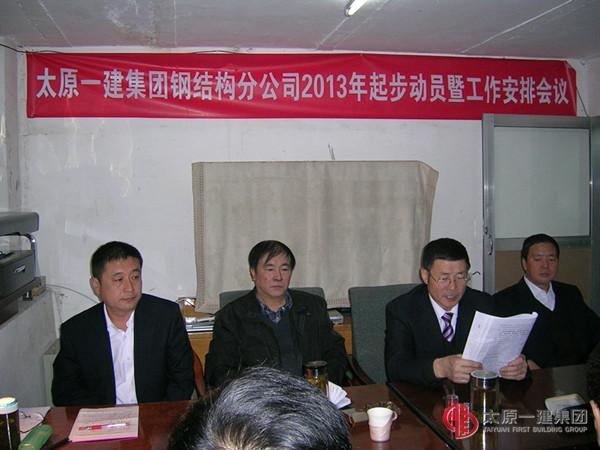 3月19日上午,钢结构分公司组织全体职工召开2013年起步动员暨工作安排会议,集团公司常务副总经理张岐泰应邀参加了会议。会上,分公司经理刘宪玲全文传达学习了集团公司2013年企业工作安排,分别与承包体钢结构厂、吊装工程队签订了2013年内部承包经营目标责任书和安全生产、消防责任书。副经理陈勇慧对分公司2013年生产经营工作进行了安排。集团公司常务副总经理张岐泰围绕市场行业形势和分公司生产经营工作,就如何拓开一条适合分公司经营发展的路子做了重要讲话。会议还传达学习了集团公司董事长王贵聪2013年安全生产工作讲话,宣布了分公司2013年管理人员工作分工等事宜。副经理陈勇慧主持了会议。