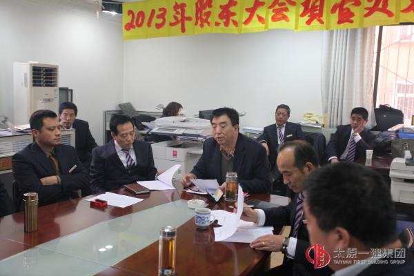 正式会议上,由副处长李朝峰宣读了集团公司2013年董事会工作报告(讨论稿)、总会计师孙天明宣读了集团公司2013年监事会工作报告(讨论稿),处长司中谦、工会副主席李宝林分别对2013年财务决算和2014年财务预算方案报告的决议、关于2013年度利润分配方案报告等报告的(草案)和内容进行了报告,全体股东一致举手通过了以上五项报告及决议。