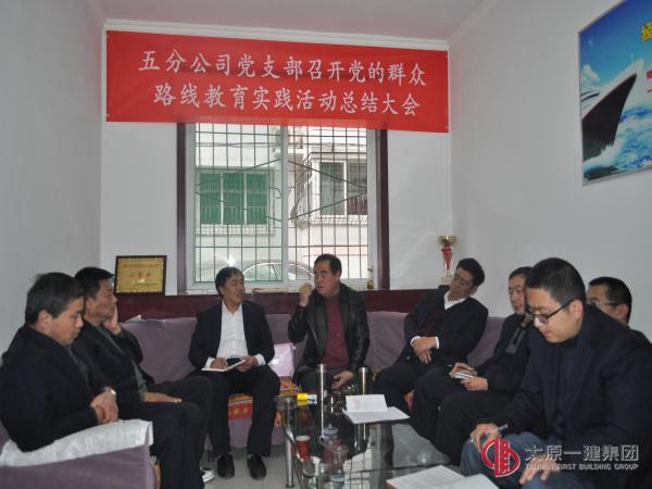 十一月六日下午,五分公司党支部召开党的群众路线教育实践活动总结会,班子全体成员、全体党员、部分管理人员、职工代表参加了会议。集团公司党委第一督导组任秀山参加会议。一、五分公司党支部书记范祎博代表党支部作群众路线教育实践活动总结报告。二、集团公司党委督导组任秀山对五分公司党支部教育实践活动总结工作进行了点评:1、对五分公司教育实践活动以来开展的各个环节工作给予了充分的肯定,五分公司在活动中紧紧围绕生产经营、安全生产,班子建设、团队建设有力的推动了生产经营和党建工作,并严格以规定动作完成各项工作,质量较高,自选动作有创新,领导班子充分发挥战斗力、凝聚力,有力地推动五分公司的工作。2、提出了四点希望和要求:一是要认真学习十八届四中全会精神;二是要继续抓好班子建设、队伍建设;抓好作风纪律和环境建设工作;三是要抓任务、抓工程款的回收,尽快走出困境,使五分公司全面发展。四是要为职工多办好事、实事。三、领导班子成员、全体党员、参会的部分管理人员、职工代表对五分公司支部班子及党员领导干部进行了无记名民主评议。会议由副书记李成主持。