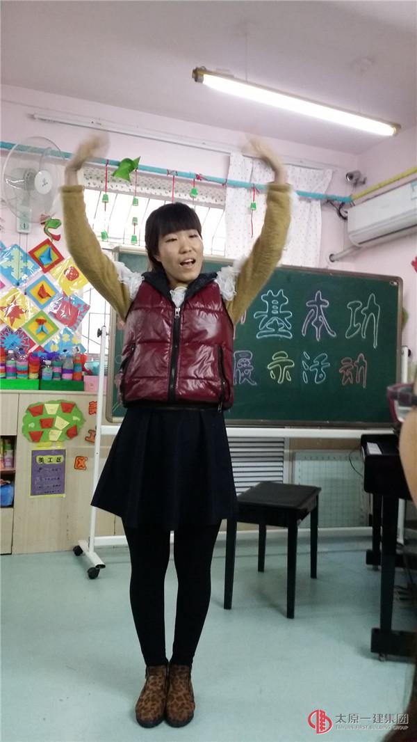 为加强我园师资队伍建设,提高教师专业素质,激励教师重视和坚持基本功训练,我园在2015年1月16日举行了全园教师基本功展示活动。本次活动通过对手指操、音乐律动、自弹自唱等平时教学活动中常用的一些基本技巧的展示,充分展现出作为一名幼儿园教师应有的风采。