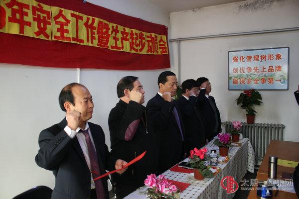 3月18日上午9:00,七分公司召开安全工作暨起步动员大会。参加会议的人员有,集团公司领导王斌、任秀山,分公司领导班子,全体管理人员。