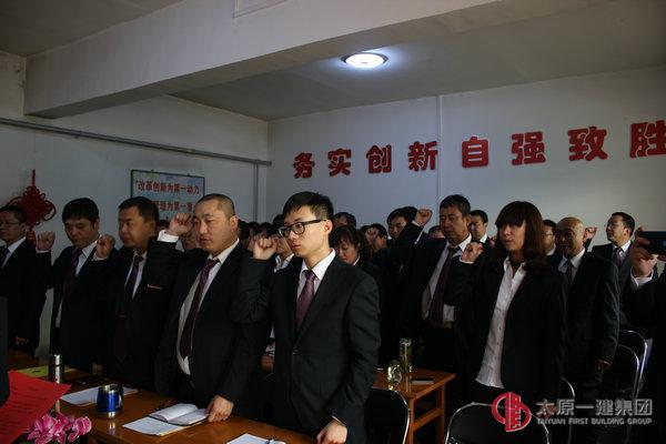 会议主要内容有:1、全员重温企业安全誓词 2、主任工程师王福做安全和技术工作发言 3、生产副经理做动员发言 4、分公司副经理、项目经理、科室负责人递交责任书和责任状 5、对2014年荣获各项荣誉的项目部、个人予以奖励 6、经营副武志文做市场经营思路、项目部和科室工作的表态发言 7、经理郭建新做2014年小结暨2015年全面工作安排 8、集团公司领导王斌对我分公司此次召开的会议予以肯定,并分享了他对于安全法、建筑业营改增等最近热词的看法,并祝愿我分公司在新的一年里更上一层楼,为企业做更多的贡献,为员工做更多的事。