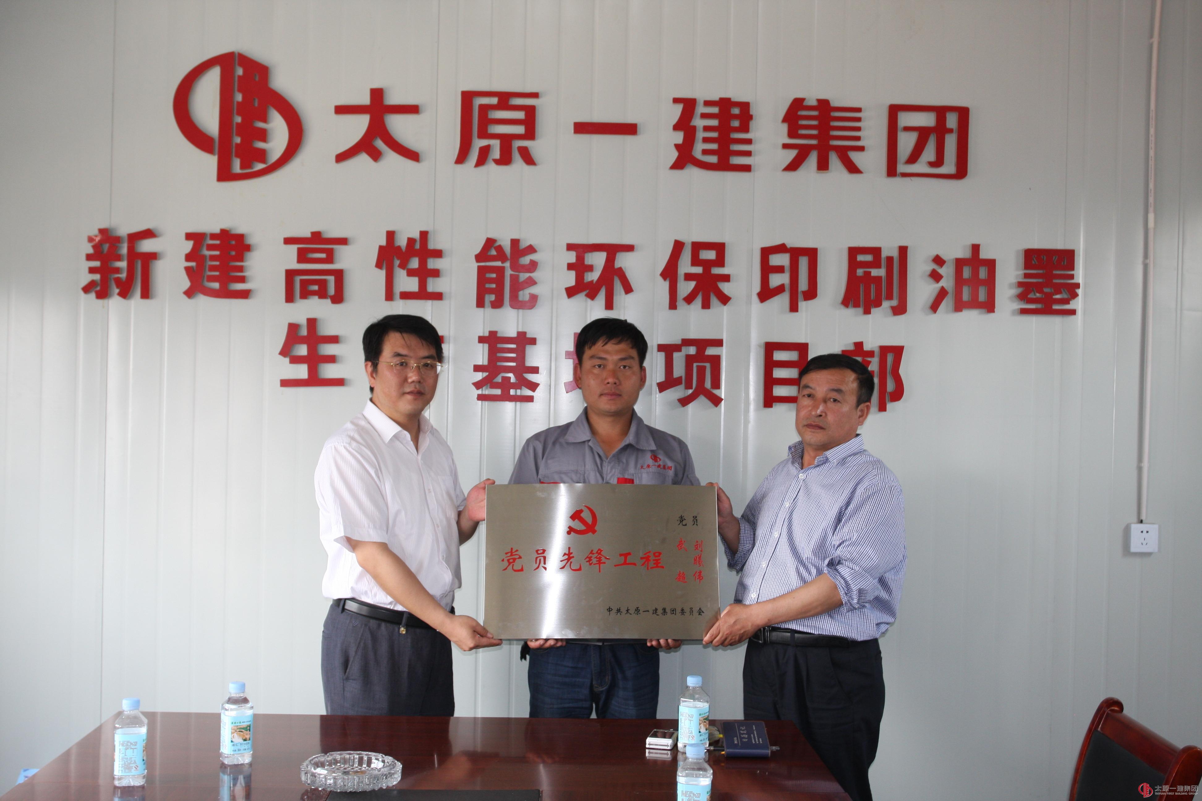 李瑞琪为十六分公司山西鹰鲲科技公司油墨基地工程项目部党员先锋工程授牌