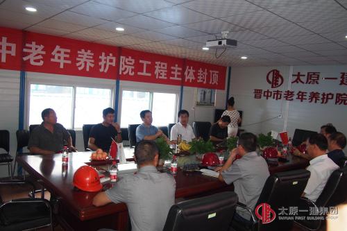 2015年8月3日,第二项目工程管理处承建的“晋中市老年养护院项目”主体结构顺利封顶。参加封顶仪式的有:晋中市民政局局长李建平、晋中市建设局代建办主任杜毓格、代建单位晋中市建筑勘察设计院院长高晓东、山西新盛建设监理有限公司总监理工程师杨秋收、太原市第一建筑工程集团有限公司董事长王贵聪和集团公司常务副总经理张歧泰、集团公司董事王斌、副总经理李伟、总经理助理陈斌及项目部全体成员。