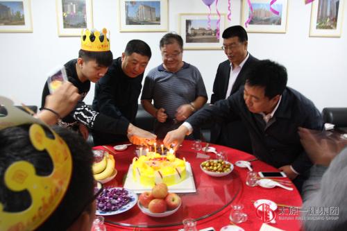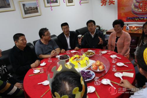 9月10日,项管二处在劲松路会议室为9月、10月出生的职工过集体生日。冒着绵绵细雨,集团公司董事长王贵聪、副董事长宋双玉、工会主席李瑞琪、党群工作部副部长何晓斌早早赶来,为职工送上浓浓的生日祝福。