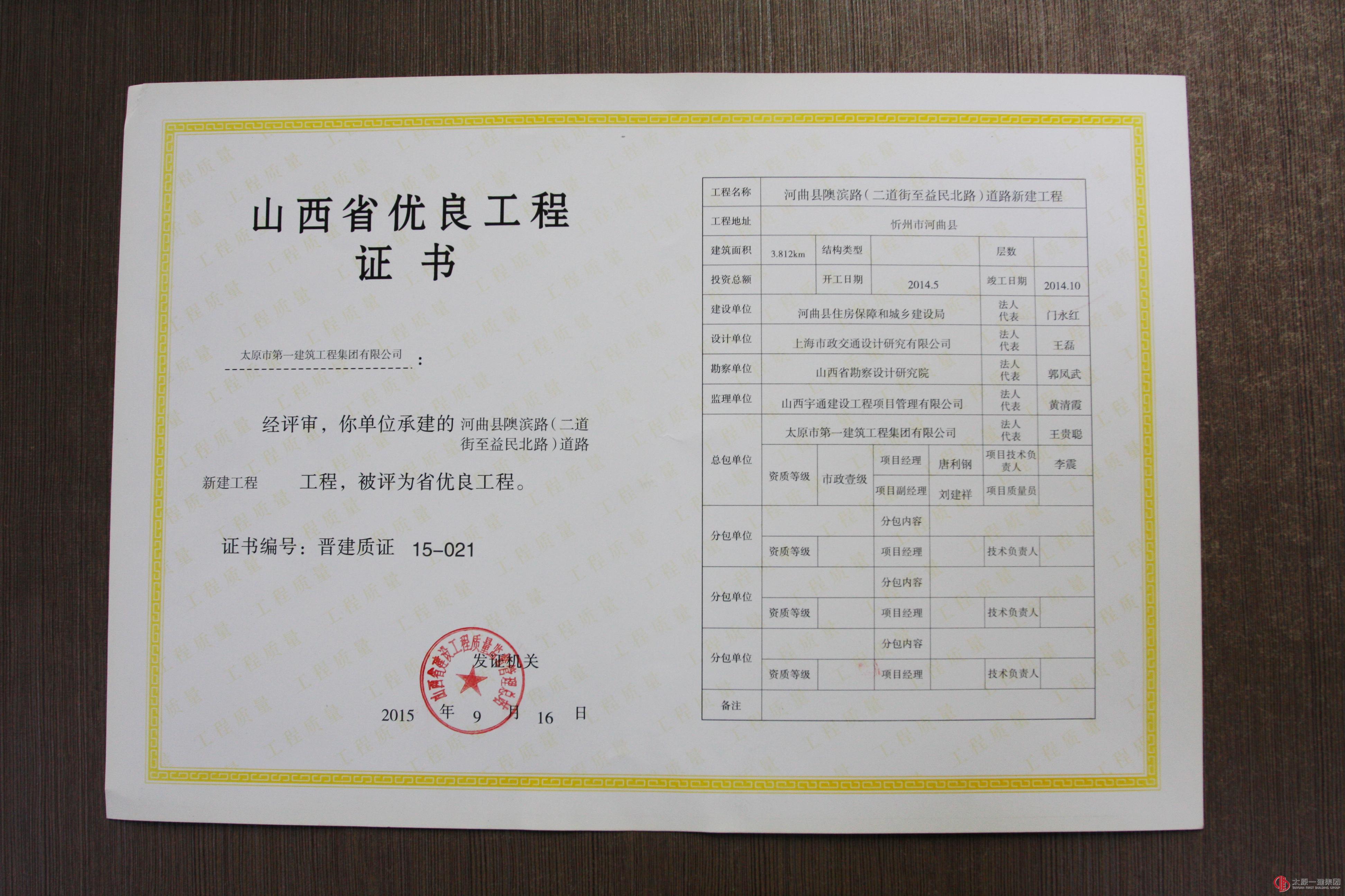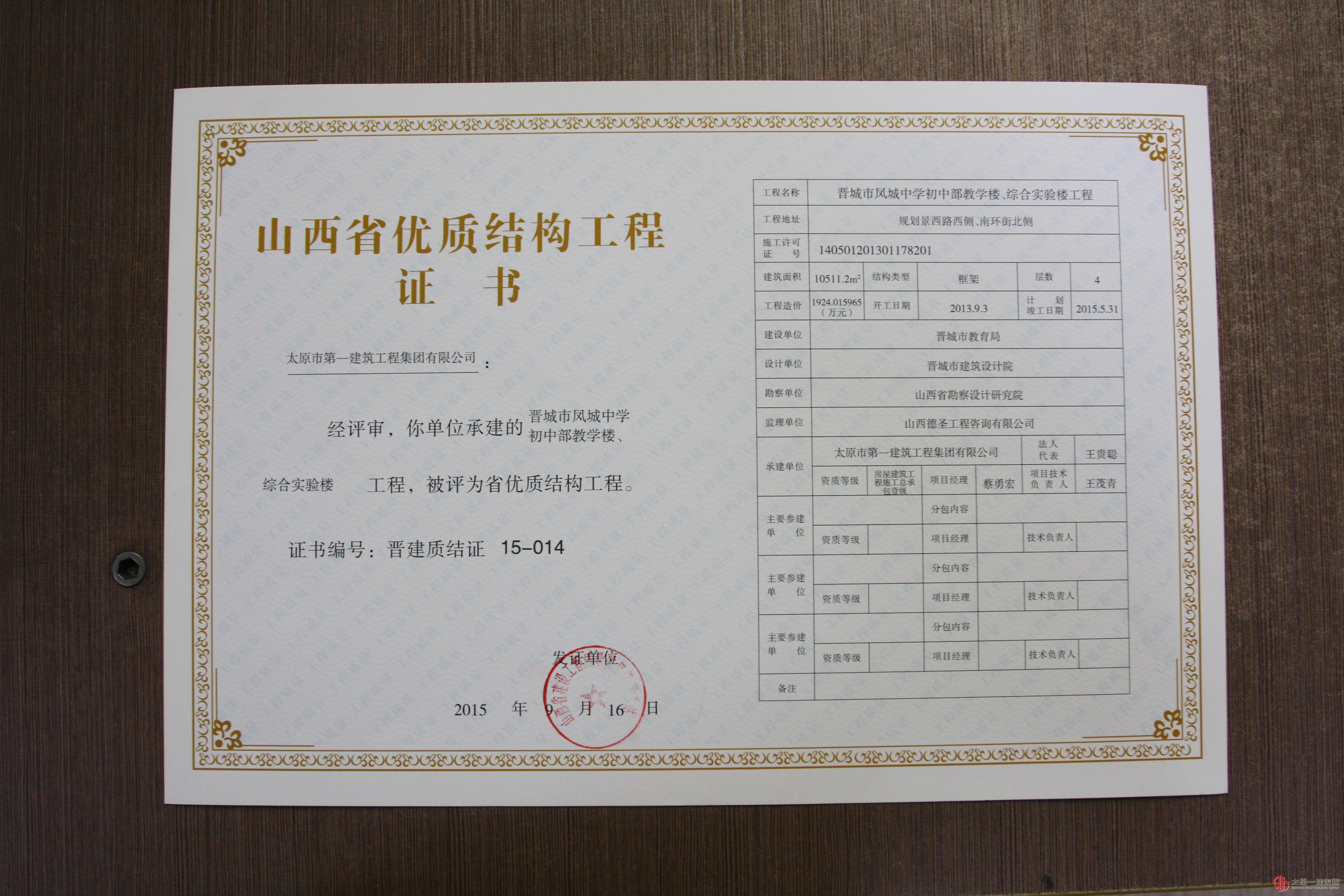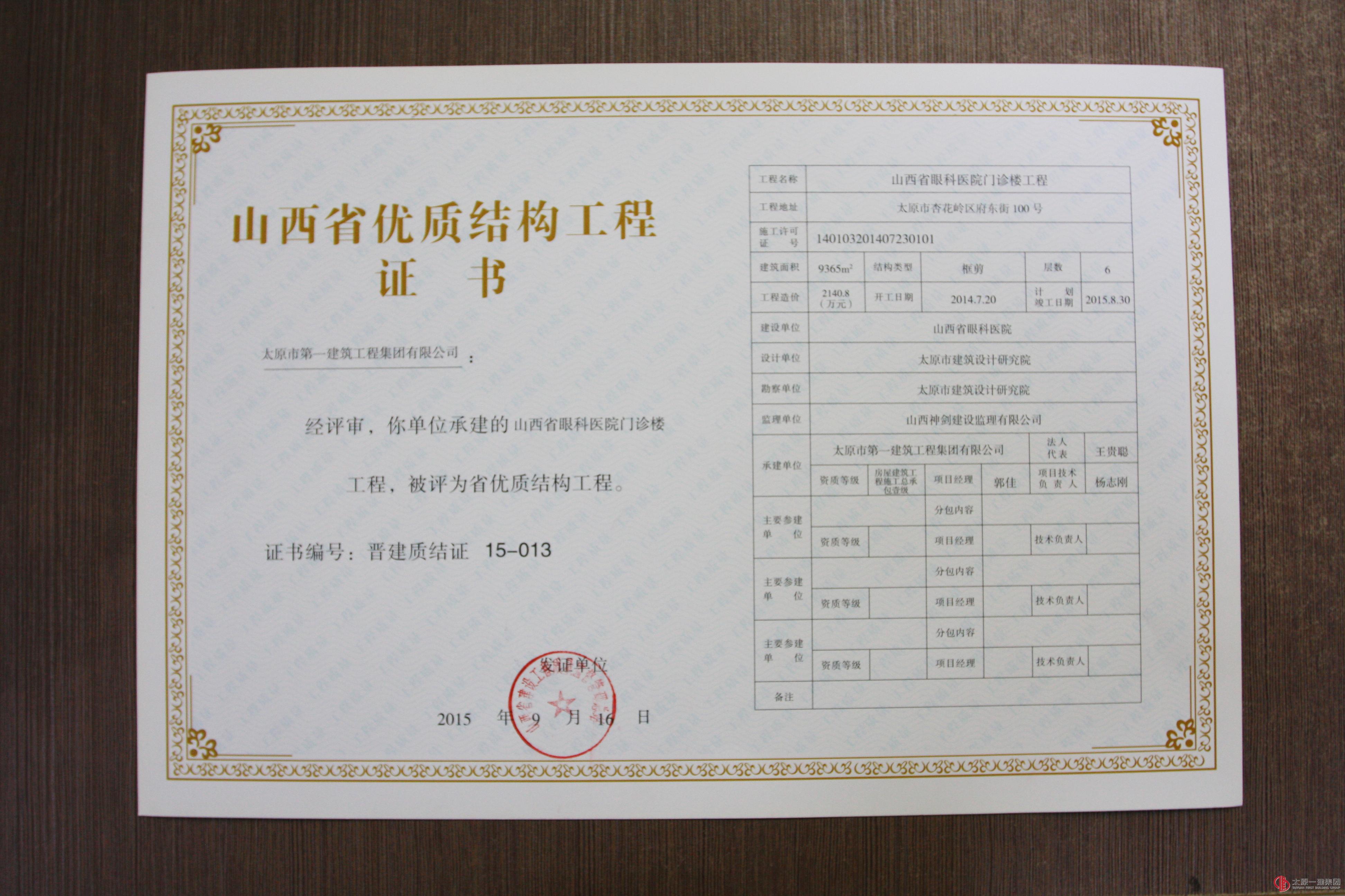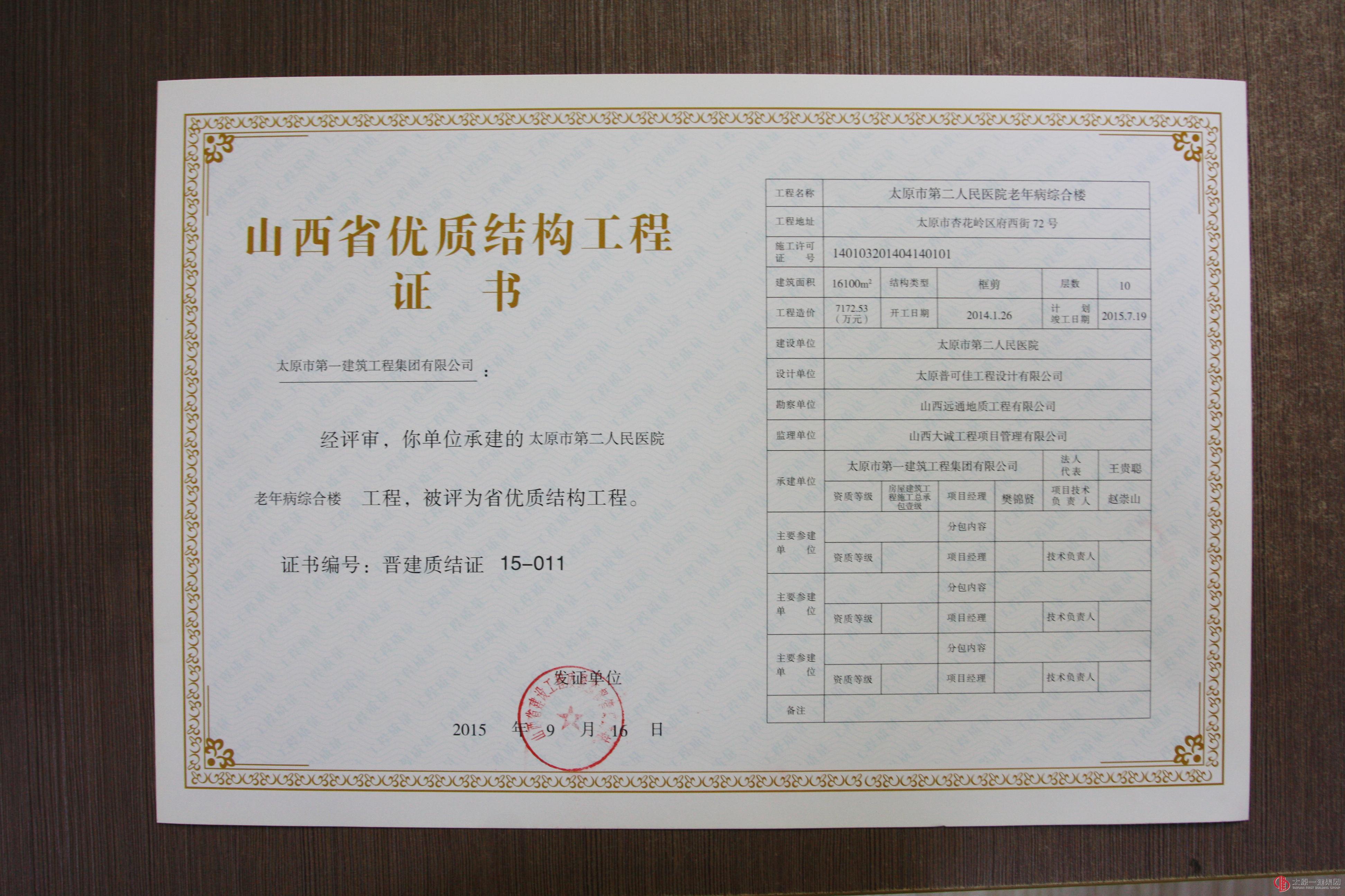 集团公司十三项工程分别荣获山西省优良、结构优质、绿色施工工程称号