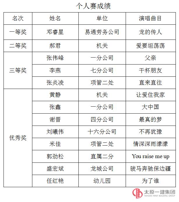团体三等奖:二分公司、十四分公司、项管二处、一分公司